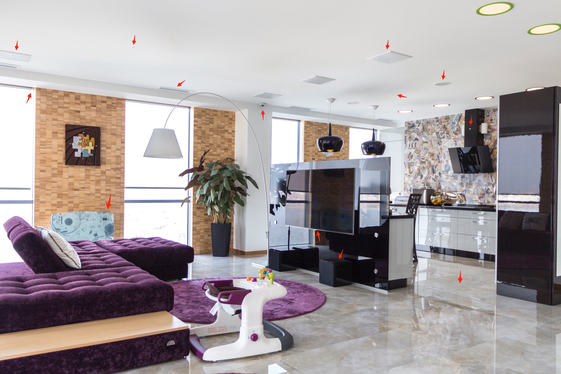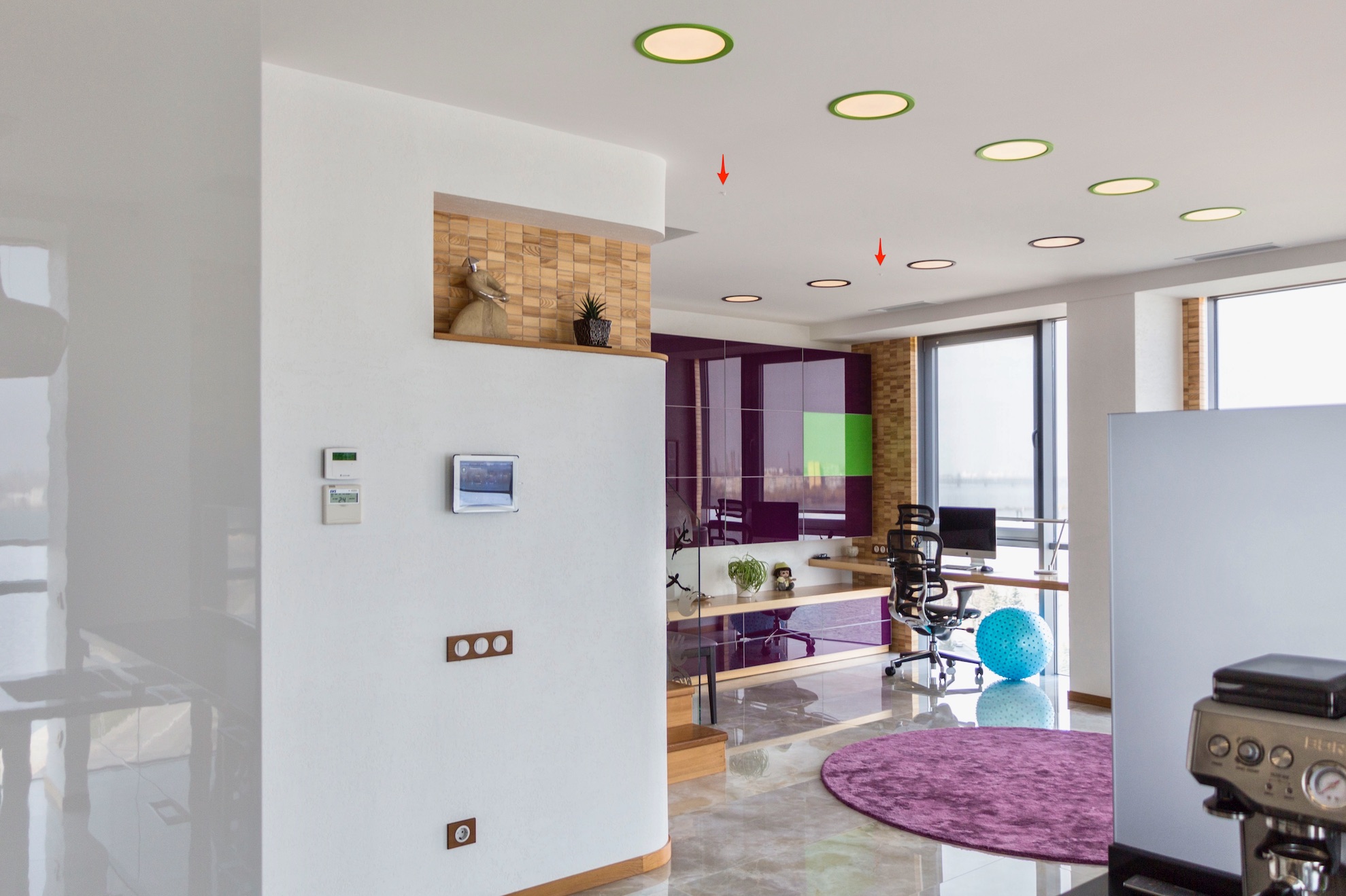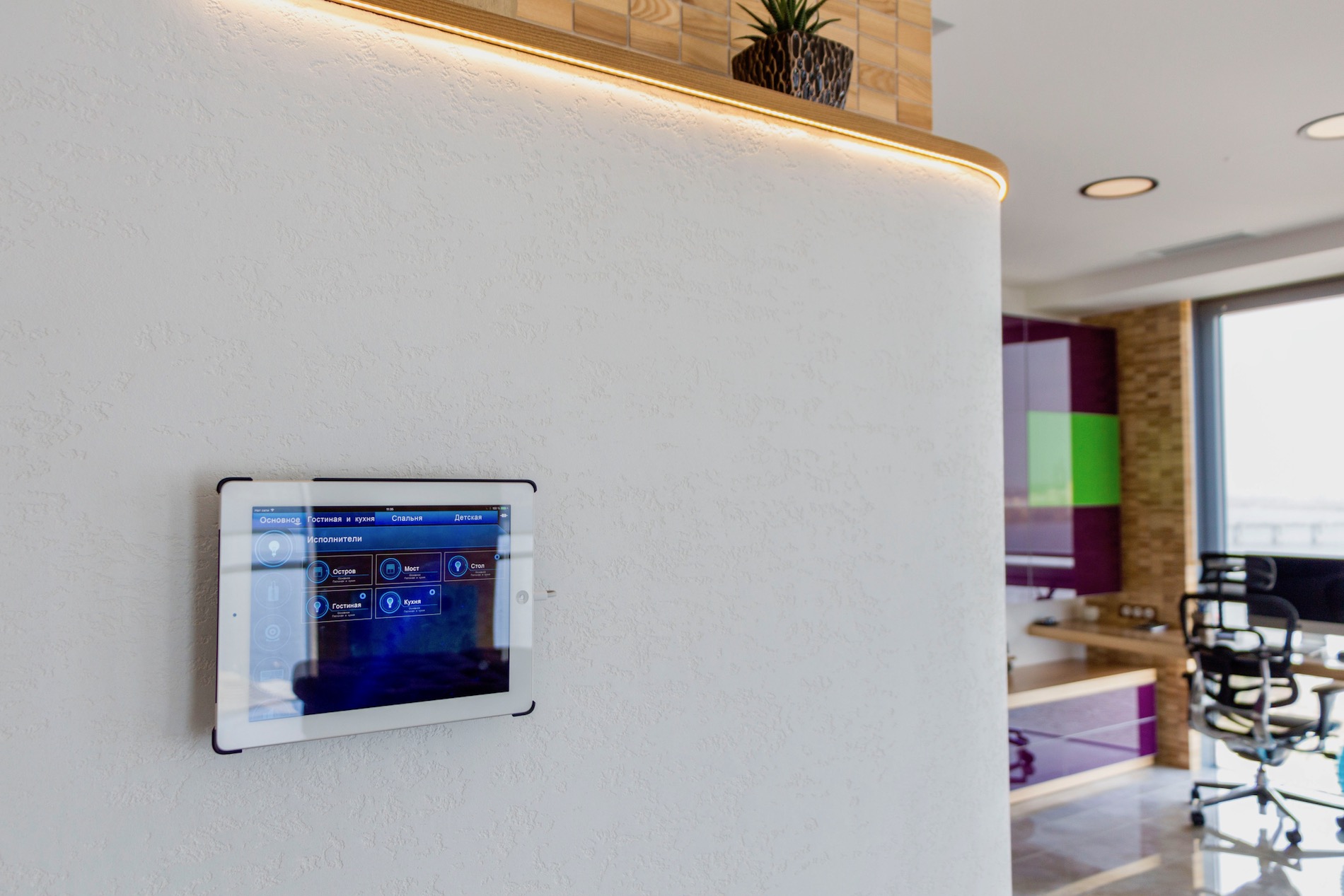 6 зон мультирума Paradigm и моторы Somfy. Весь свет (47 светильников) управляется с планшетов через единый интерфейс.